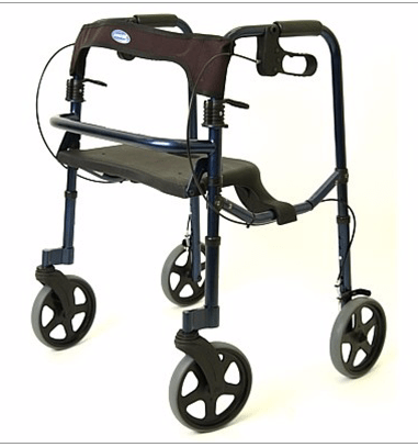 The Rollite Rollator looks like a regular walker, except it has larger wheels and a fold-down seat. Mine had a basket, When in my wheelchair, I could also use the Rollator seat as a portable desk.